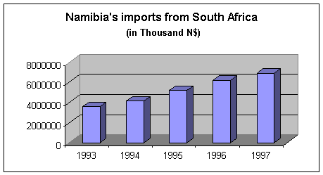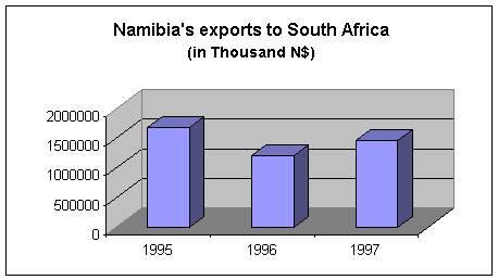 Zimbabwe is also a big market: In 1997 it received N$ 5,707 Millions of SACU’s